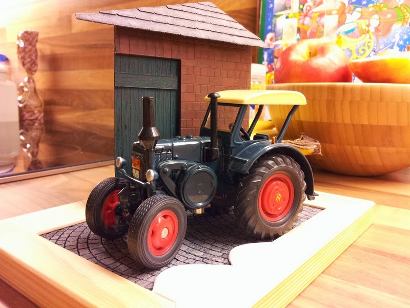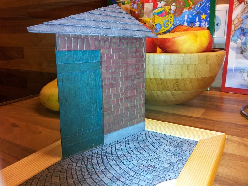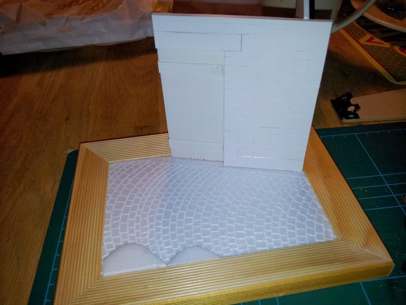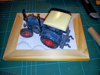 Beim genauen Betrachten des Regals meines Freundes, wurde mir bewußt, das für das ursprüngliche gedachte Diorama gar nicht genug Platz ist. Also ein zweites begonnen, das einen kleineren Bilderrahmen als Basis hat.