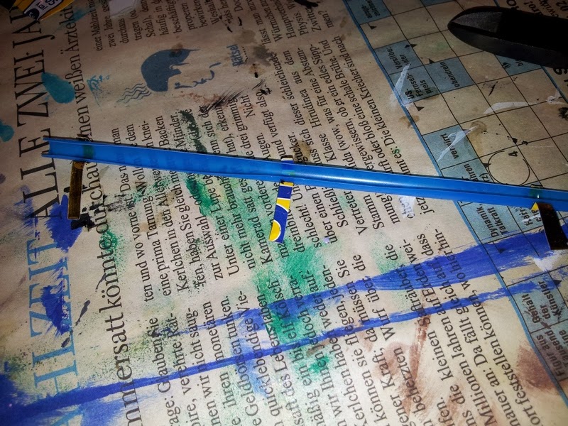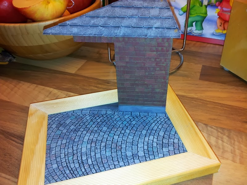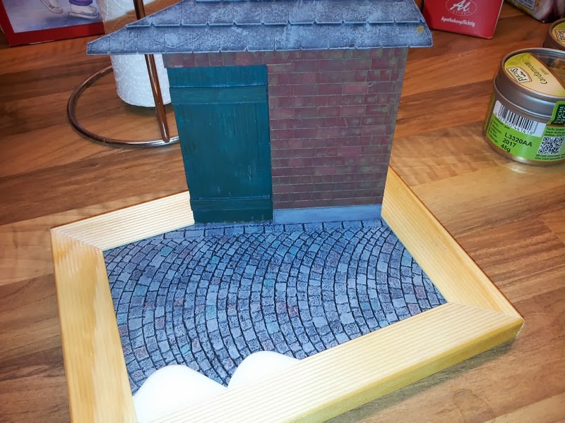 Beim genauen Betrachten des Regals meines Freundes, wurde mir bewußt, das für das ursprüngliche gedachte Diorama gar nicht genug Platz ist. Also ein zweites begonnen, das einen kleineren Bilderrahmen als Basis hat.