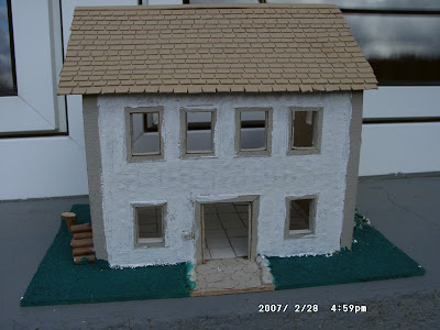 Heute haben Kim und ich Strukturfarbe aufs Puppenhaus aufgetragen. Außerdem kann man weitere Fortschritte auf diesen Bildern sehen. Mittlerweile sind sämtliche Fliesen aufgeklebt, auf der linken Seite vom Haus gibt es Feuerholz und auf der rechten haben wir mit Wellpappe und Aquariumkies ein Kräuterbeet angelegt.
